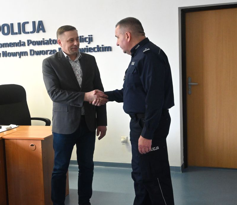Symbolicznego przekazania dokonał Wicestarosta Nowodworski Andrzej Pacocha. W wydarzeniu uczestniczyli również Komendant Powiatowy Policji podinspektor Roman Krzyżewski oraz Zastępca Komendanta podinspektor Arkadiusz Wrzeszczyński.